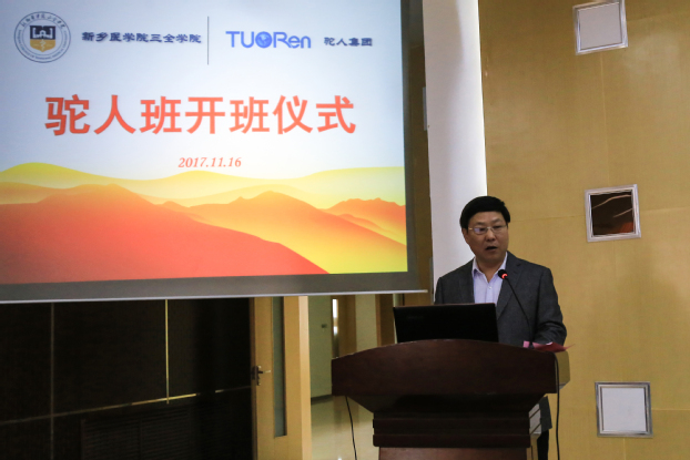 11月16日上午,驼人集团和我院管理学院、医学工程学院携手共建的首届“驼人班”开班仪式在平原校区行政楼学术报告厅举行。驼人集团副总裁张庆文、我院党委书记王志凯,驼人集团人力资源管理中心副经理张利聪、我院产教融合办公室、科研部、健康管理学院、医学工程学院、德馨书院、崇德书院等部门负责人和“驼人班”首批41名学员共同参加。仪式由产教融合办公室主任张东主持。 王志凯代表学院向驼人集团的大力支持表示衷心感谢。他说,两家六年多以来的合作过程中,从原来的教职员工互访、新生入学教育、奖学金设立,到如今的实习就业基地建设、高层次人才互聘、科研平台合作共建以及驼人班的组建,双方的合作不断走向了新高度。他提出,同学们要珍惜机会,积极实践,不断加强自身的知识储备和思想修养;老师们要把握机遇,积极互动交流,把行业前沿知识运用到教学中,同时多利用双方科研平台推进产学研协同创新。 随后,张庆文向“驼人班”的同学们表示祝贺,并向我院师生介绍了企业的发展历程和自强不息、感恩向上、创新专注、合作共赢的企业文化核心,以及驼人集团未来的发展规划。 接着,学员代表吴飞飞发言,她学院和企业给同学们提供了学习机会,并表示大家将专心学习,严守纪律,加强交流,在驼人班里学有所成。 最后,在百余名师生的见下,王志凯、张庆文共同为“驼人班”班牌揭牌,开班仪式圆满结束。 仪式结束后,带领相关部门负责人与驼人集团就驼人班课程设计、教材选用、授课方式等及科研合作、硕士点申报等各项内容进行了深入洽谈。 据悉,首届“驼人班”学员是由学生自愿报名,企业组织职业测评筛选和面试的方式产生,由市场营销、生物医学工程、电子科学技术等专业41名同学组成。该班设立了带班老师进行日常管理和实践活动指导;企业开发了行业发展分析、医疗器械法律法规、人才成长通道和职业发展规划等六门课程,学校开发了生物医学工程概论、电子学概论、市场营销等三门课程,共同组成了驼人班特色课程体系。订单培养期间,学院将定期组织走访,了解行业企业对培养学生的要求,组织学生参加企业活动,定期向企业反馈学生相关信息。企业则定期选派公司高级管理人员与技术骨干为学生授课提高专业知识、实操技能,提供实习实训场所,毕业后学生优先到驼人集团实现高质量就业。“驼人班”是我院继欣奕班、凯普班、翔宇班之后的第四个企业特色班,为校企深度合作打下了良好的基础,为企业持续健康发展提供强有力的人力支撑,共同为地方社会经济的发展服务。