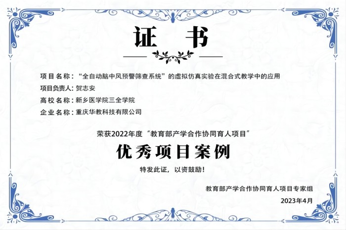 4月1日,由教育部高等教育司指导、教育部产学合作协同育人项目专家组主办的第九届教育部产学合作协同育人项目对接会在北京举行。会议发布了2022年度教育部产学合作协同育人项目优秀项目案例,我校贺志安教授主持的《“全自动脑中风预警筛查系统”的虚拟仿真实验在混合式教学中的应用》教学内容和课程体系改革项目成功入选2022年度优秀项目案例。这是我校首个入选的教育部产学合作协同育人项目优秀项目案例。 该项目是我校与重庆华教科技有限公司产学合作,结合现代医学检验的发展和临床检验的人才需求,紧紧围绕目前高发病率、高致残率、高死亡率脑卒中疾病的筛查设备“全自动脑中风预警筛查系统”这一学生必须掌握且临床常用的“高、精、贵”国产仪器为着力点,合作完善了新医科《临床检验仪器学》课程专业实验教学内容,填补了本专业无规范化的“全自动脑中风预警筛查系统”虚拟仿真操作培训考核平台的空白。 近年来,我校积极探索产学合作协同育人创新发展的模式和路径,推进现代产业学院和特色行业学院建设,特别在新医科建设、教学内容和课程体系改革、创新创业教育改革、实践条件和实践基地建设、师资培训等方面与企业展开全方位合作,通过“政府搭台、企业支持、高校对接、共建共享”途径,深化产教融合,促进教育链、人才链与产业链、创新链的有机衔接,以产业和技术发展的最新需求推动高校人才培养改革,实现了我校人才培养与产业发展的合作共赢。 据悉,本批优秀项目案例遴选由高校推荐、企业审核,共计申报429项,最终经教育部项目专家组评审,确定了来自83所高校、71家企业的124项案例为优秀项目案例。教育部产学合作协同育人项目优秀项目案例旨在展示项目实施过程中产生的优秀成果、典型做法和成功经验,鼓励更多高校和企业深入探索产学合作新模式、研究产学合作新机制、拓展产学合作新领域,进一步扩大和提升项目影响力,使项目成果惠及更大范围。