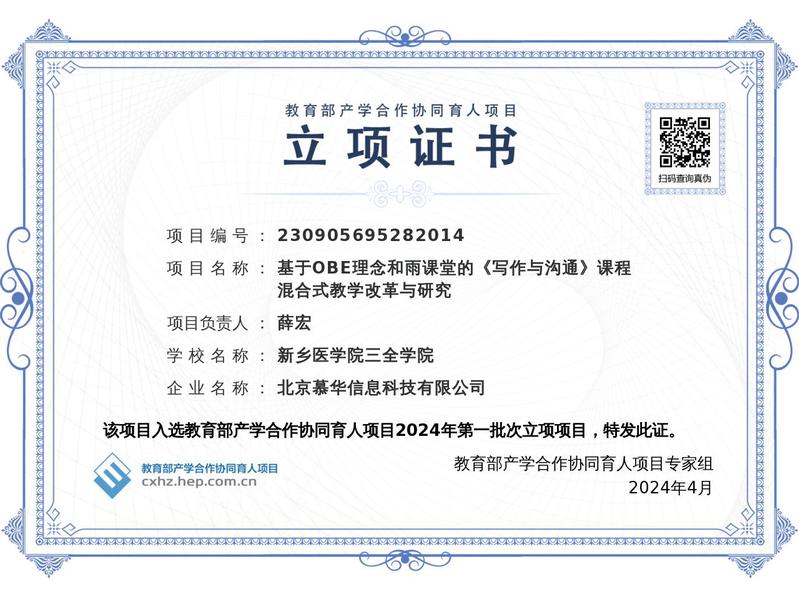 近日,教育部高等教育司发布了《关于公布2024年第一批产学合作协同育人项目立项名单的通知》,我校副院长薛宏主持的《基于OBE理念和雨课堂的“写作与沟通”课程混合式教学改革与研究》、临床学院赵天皎主持的《基于智能AI协同的社区全科医师师资培训》和临床学院王静主持的《基于智能医疗背景下的临床医学专业培养模式研究》项目成功获批,共获经费支持37万。 教育部产学合作协同育人项目已纳入新一轮普通高等学校本科教育教学审核评估指标体系,旨在促进教育链、人才链与产业链、创新链有机衔接,以产业和技术发展的最新需求,深化企业与高校的产学合作,推动高校人才培养改革。 学校高度重视产教融合工作,大力支持校企合作协同育人平台建设和项目申报,鼓励教师与企业开展全方位、持久性的合作。本次项目获批立项,是学校持续推进产学合作协同育人工作取得的阶段性成效。下一步,学校将以此为契机,加强对项目的管理和指导,强化校企合作协同育人功能,大力推进教育教学改革,全面提高人才培养质量。