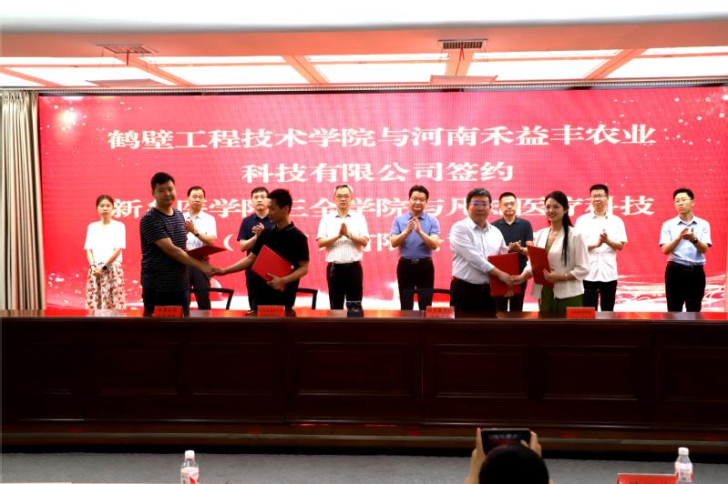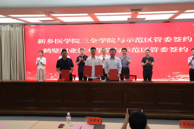 5月31日,我校与鹤壁市城乡一体化示范区管委会、凡知医疗科技(河南)有限公司在国家863鹤壁科技创新园举行政校企合作签约仪式。示范区党工委副书记王斌、管委会副主任张香成,我校常务副院长秦国亮、医学检验学院院长贺志安,凡知医疗科技(河南)有限公司总经理高瑞云出席签约仪式。会议由示范区党工委委员、纪工委书记、监察工委主任王文飞主持。